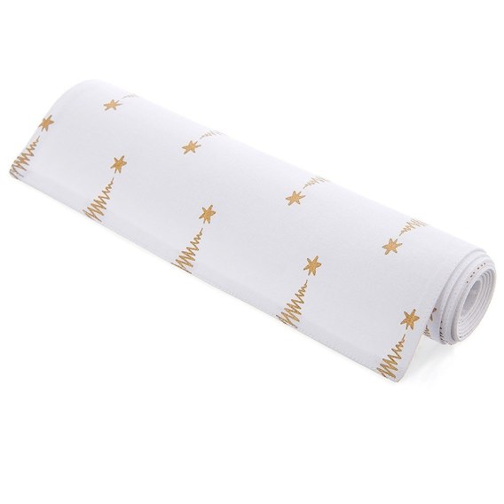 - Wykonany z bawełny - Bieżnik wykonany ze 100% bawełny w białym kolorze z efektownym dekorem w postaci złotych choinek.
