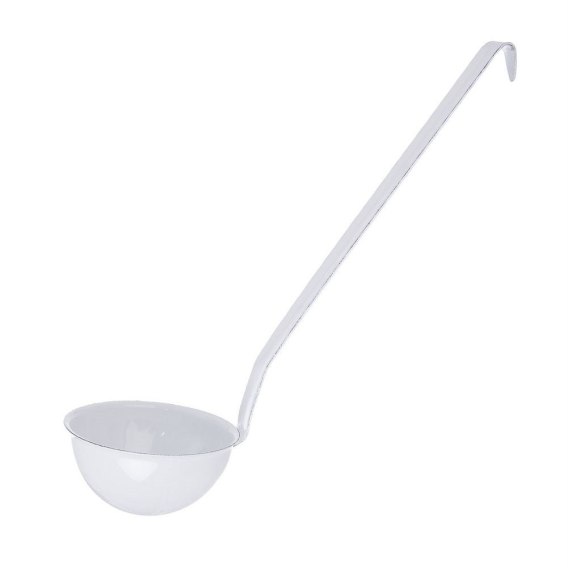 Tradycyjna chochla wykonana ze stali emaliowanej. Posiada wygodny uchwyt z możliwością zawieszenia. Pomocna przy nalewaniu zup, gulaszów i sosów.