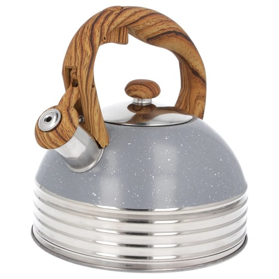 Czajnik stalowy z gwizdkiem na indukcję 2.5L szary marmurek uchwyt drewno BRUNBESTE BB-2477