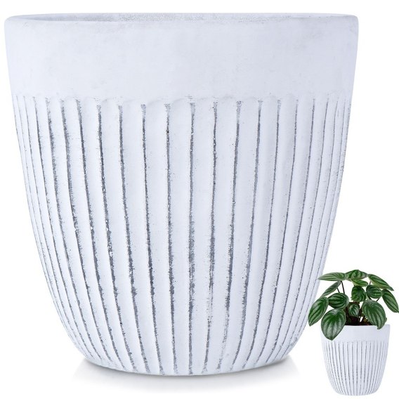 Doniczka na roślinę utrzymana w postarzanym stylu z efektem przetarć. Wykonana z ceramiki w białym kolorze. Wyposażona jest w antypoślizgowe, filcowe podkładki.