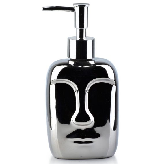Dozownik ceramiczny do mydła płynu do naczyń na mydło srebrny twarz VILDE 530724