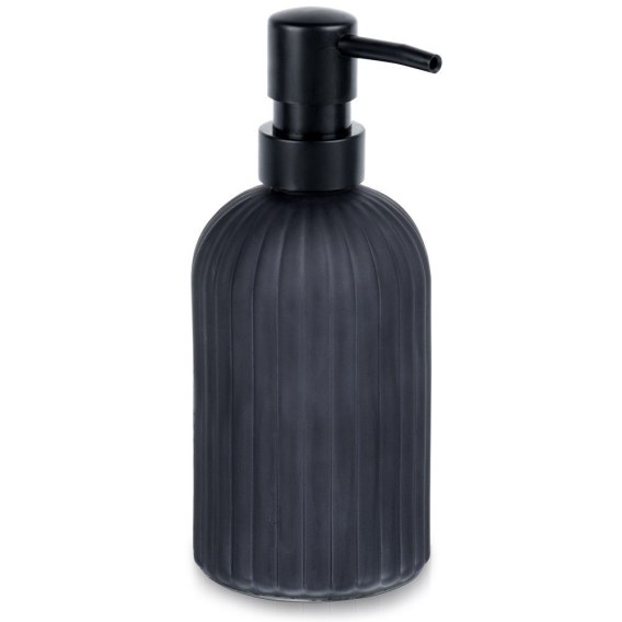 • SZKLANY - Dozownik wykonany z najwyższej jakości szkła, które pomalowane jest na czarny, matowy kolor. Pompka wykonana jest z tworzywa w czarnym kolorze. Pojemnik posiada pionowe, tłoczone paski.