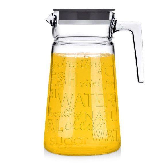 Uniwersalny, szklany dzbanek do napojów. Idealnie sprawdzi się do wody, serwowania soków, lemoniady, herbaty mrożonej, kompotu itp. Posiada pokrywkę, dzióbek oraz wygodny uchwyt.