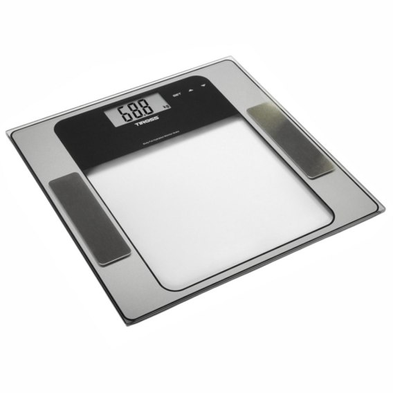 Waga łazienkowa Analityczna 150 kg TIROSS TS-1311 Nowoczesna waga łazienkowa z płytą wykonaną ze szkła hartowanego zapewnia łatwy pomiar wagi, tłuszczu oraz wody w organizmie.