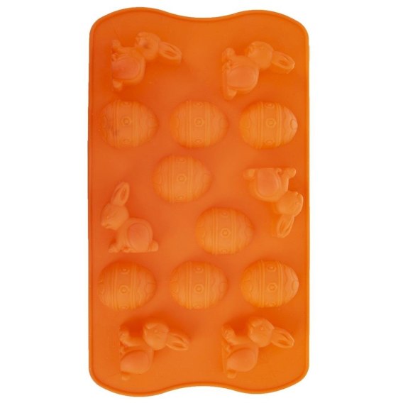 Pomarańczowa forma silikonowa w wielkanocnym wydaniu, idealna do pralin jak i pieczenia ciastek. Jest lekka, elastyczna, zajmują mało miejsca.
