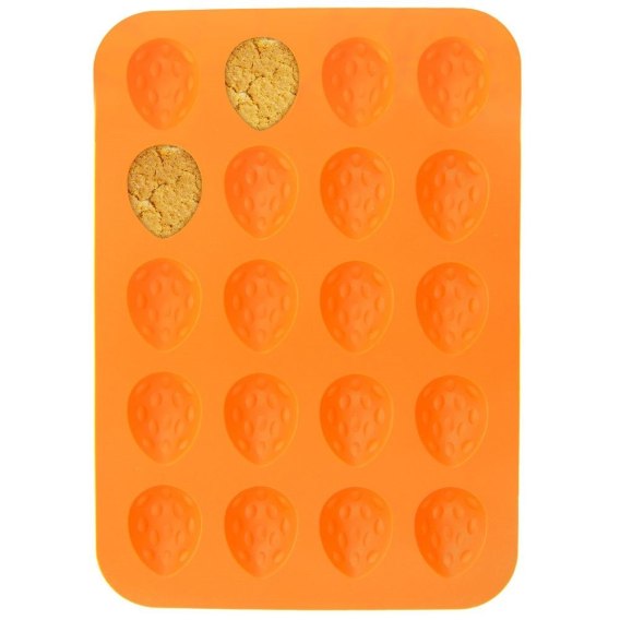 Forma silikonowa do pieczenia kruchych ciastek w kształcie orzechów. Jest lekka, elastyczna i zajmuje mało miejsca. Materiał odporny na zmiany temperatury, bardzo dobrze przewodzi ciepło.