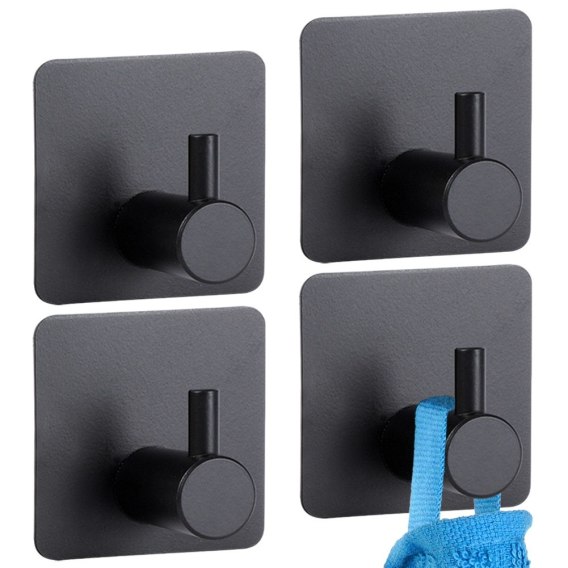 Zestaw 4 sztuk haczyków samoprzylepnych wyposażonych w taśmę 3M. Wykonane z matowej stali nierdzewnej w czarnym kolorze. Idealne do zawieszenia ręczniczków lub ściereczek.