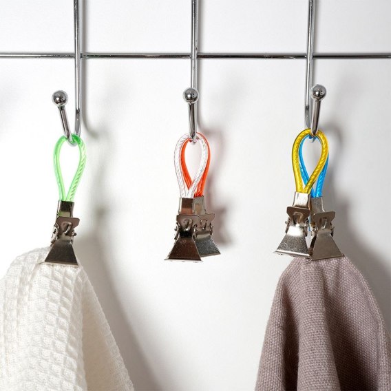 • UNIWERSALNE - Klipsy wykorzystamy zarówno w łazience np. do odwieszania ręczników, jak również w kuchni do zawieszenia ręczniczków kuchennych oraz ścierek.