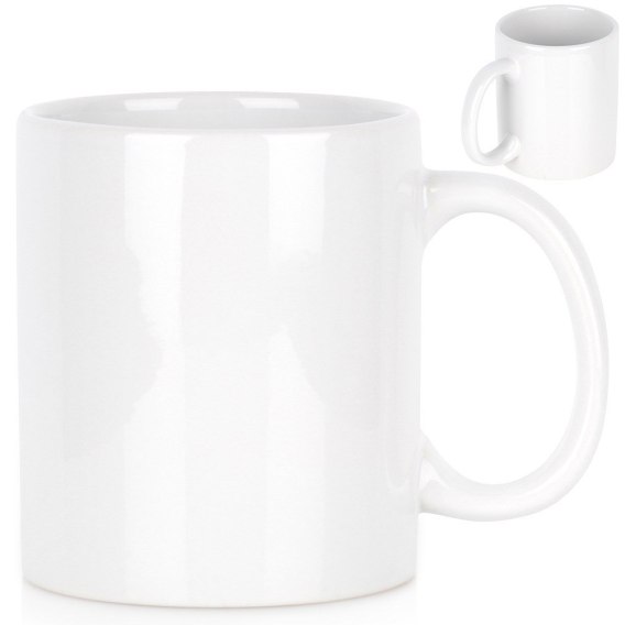 Kubek 330 ml do picia kawy, herbaty i innych napojów. Kubek wykonany z ceramiki w białym kolorze. Posiada wygodny uchwyt. Nadaje się do zmywarki i mikrofalówki.