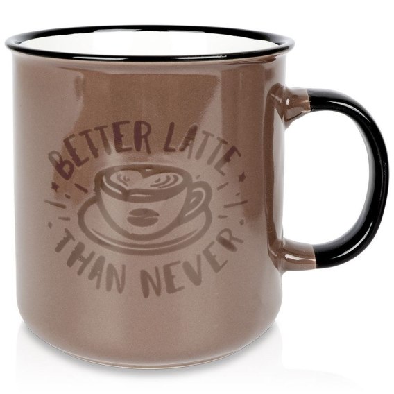Duży kubek o pojemności 700 ml. Wykonany z ceramiki w kolorze brązowym z ozdobnym napisem. Nadaje się do podgrzewania w mikrofalówce oraz mycia w zmywarce.