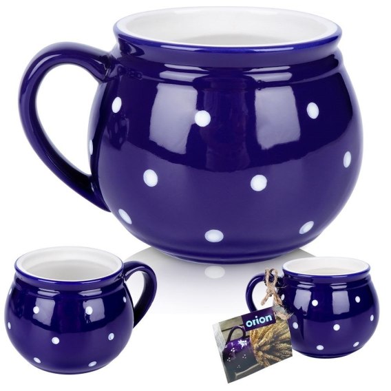 • SOLIDNY - Wykonany z wysokiej jakości ceramiki w granatowym kolorze z dekorem w postaci białych kropek. Odpowiednio użytkowany posłuży długie lata.