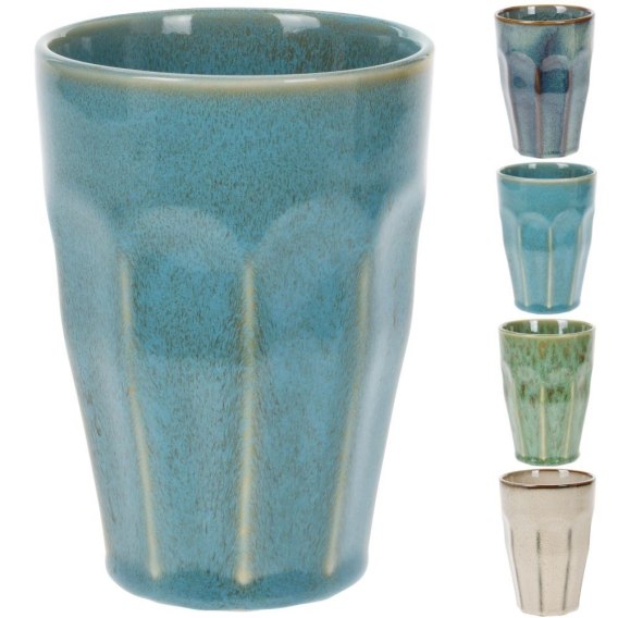 Zestaw porcelanowych, różnokolorowych kubków do napojów ciepłych oraz zimnych. Kubki nadają się do mycia w zmywarkach do naczyń.