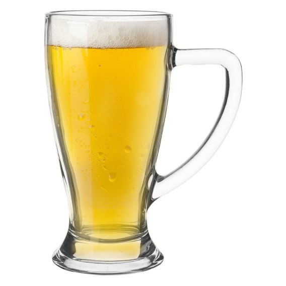 Wysoki kufel szklany o pojemności 420 ml wyposażony w wygodny uchwyt. Wykonany z grubego szkła, nadaje się do zmywarki. Sprawdzi się również do innych napojów.