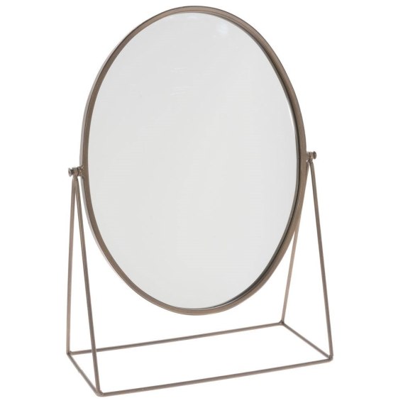 Lusterko o metalowej konstrukcji sprawdzi się podczas robienia makijażu lub prostych zabiegów kosmetycznych.