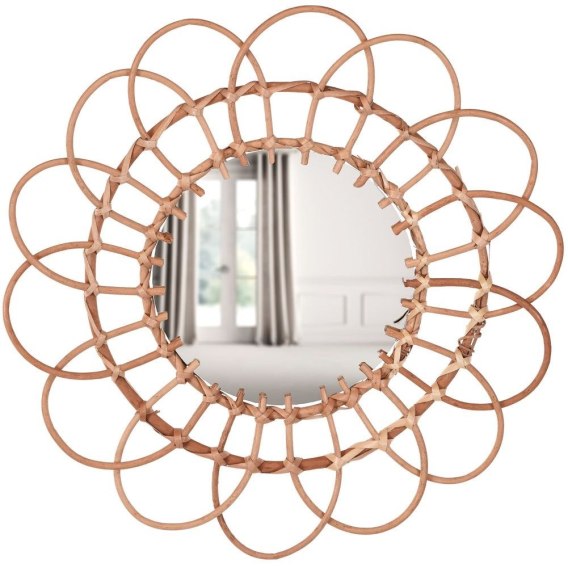 Lustro w plecionej, wiklinowej ramie do powieszenia na ścianie. Pięknie będzie się prezentować w pomieszczeniach w stylu Boho.