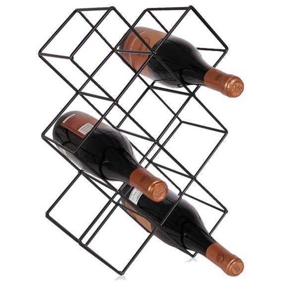 Stojak na wino wykonany z metalu w kolorze czarnym. Pomieści 8 butelek ulubionego trunku. Stojak może stać zarówno na podłodze jak i na blacie.