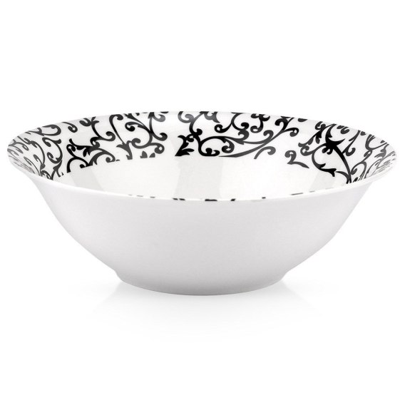 Duża miska o pojemności 1,1 l i uniwersalnym zastosowaniu. Wykonana z porcelany w białym kolorze. Posiada efektowny, czarny dekor z motywem kwiatów. Nadaje się do zmywarki.