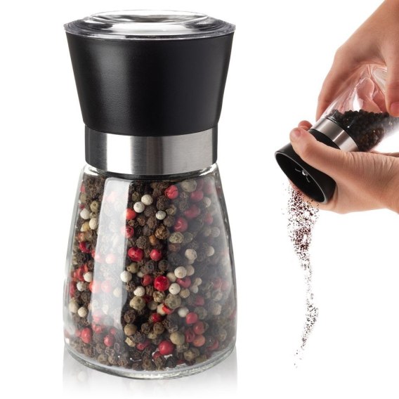 Ręczny młynek idealnych do pieprzu lub soli. Niezbędny w każdej kuchni. Młynek pozwoli odpowiednio zmielić sól lub pieprz, a także inne przyprawy. Mielenie bezpośrednio przed podaniem pozwala na zachowanie świeżości oraz uwolnienie aromatu przypraw. Łatwy w czyszczeniu i użytkowaniu. Młynek, dzięki przezroczystej formie dobrze komponuje się z pozostałą zastawą. Świetnie sprawdzi się w lokalach gastronomicznych. Ręczny młynek jest zawsze sprawdzonym pomysłem na prezent np. z okazji parapetówki. Całkowicie bezpieczny dla zdrowia i neutralny dla żywności. Wyprodukowano zgodnie z europejskimi standardami.