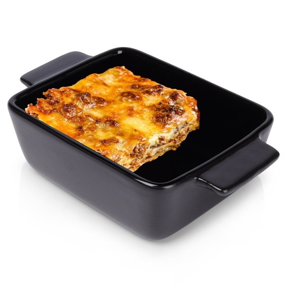 Żaroodporne naczynie do zapiekania lasagne, ziemniaków, pieczonych warzyw, zapiekanek, deserów itp. Naczynie wykonane z ceramiki w czarnym kolorze.