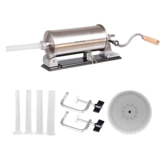 Pozioma nadziewarka do kiełbas KLAUSBERG KB-7928 to praktyczne i solidne urządzenie stworzone z myślą o miłośnikach domowych wyrobów. Wykonana z wysokiej jakości stali nierdzewnej, zapewnia trwałość, higienę i łatwe czyszczenie. Dzięki pojemności 3 kg świetnie sprawdzi się zarówno do przygotowania mniejszych partii, jak i większej ilości kiełbas, kabanosów czy innych wyrobów mięsnych. Pozioma konstrukcja gwarantuje stabilność podczas pracy, a mocne mocowanie i ręczna korbka z drewnianym uchwytem sprawiają, że obsługa jest wygodna i bezpieczna.