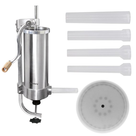 Profesjonalna ręczna nadziewarka o wielkości wsadu mięsnego 3.0kg (6lbs) jest idealnym urządzeniem do napełniania farszem osłonek przy wyrobie wędlin, przeznaczonym dla gospodarstw domowych oraz małych masarni lub sklepów mięsnych. Nadziewarki umożliwiają produkcję szerokiego asortymentu kiełbas, od kabanosów i parówek do klasycznych kiełbas oraz salami w zależności od wielkości lejka użytego do napełniania.