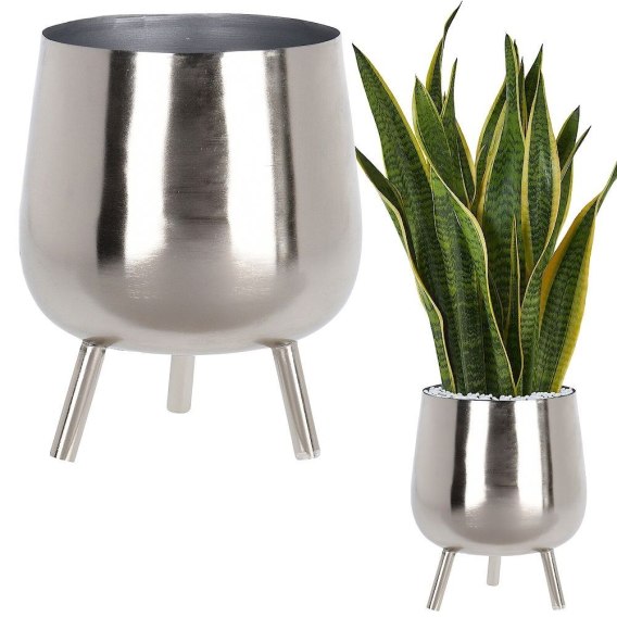 Oryginalna doniczka na nóżkach. Stylowa i elegancka. Wykonana z metalu w kolorze srebrnym. Dzięki niej w piękny sposób wyeksponujesz rośliny żywe oraz sztuczne.