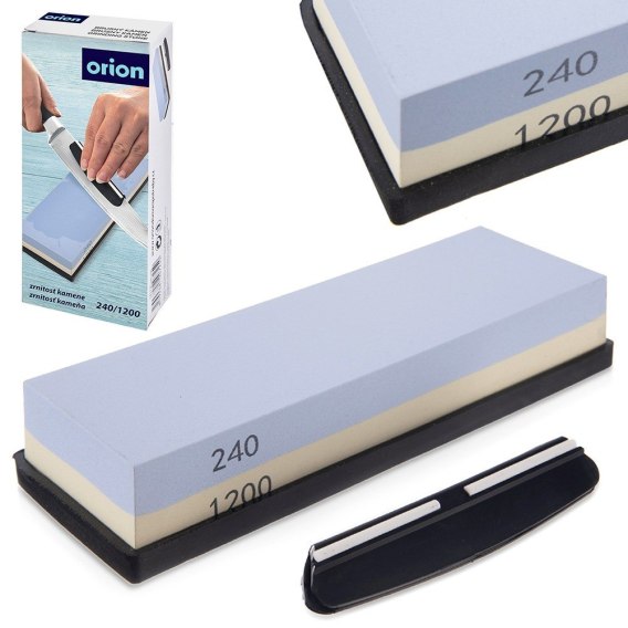 Ostrzałka kamienna z silikonową podkładką antypoślizgową i prowadnicą do ostrzenia noży z rolkami ceramicznymi. Z jej pomocą możemy naostrzyć każdy nóż w sytuacji, gdy już się stępił. Sprawdzi się do także do ostrzenia tasaków, scyzoryków, dłut oraz siekierek. Ostrzałka nie nadaje się do noży ząbkowanych i ceramicznych. Antypoślizgowa podstawa sprawi, że ostrzałka dobrze przylega do blatu. Korund, z którego wykonana jest ostrzałka, charakteryzuje się wysoką odpornością na ścieranie i korozję, dzięki czemu można jej używać wielokrotnie. Idealna dla osób preferujących tradycyjne ostrzenie na mokro. Do czyszczenia ostrzałki nie należy używać substancji chemicznych. Oryginalny produkt czeskiej marki Orion.Wyprodukowano zgodnie z europejskimi standardami.