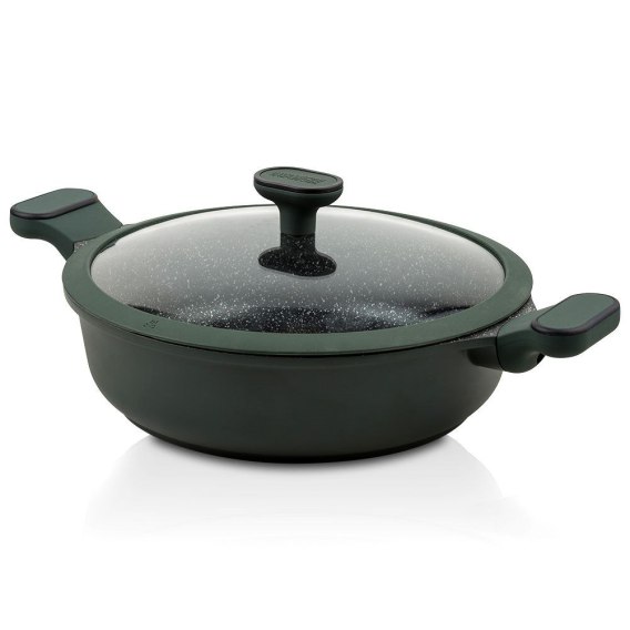 Materiał: aluminium, Długość: Szerokość: 40,5 cm, Wysokość: 8 cm, Średnica: 26 cm, Wysokość z pokrywką: 14,5 cm, Głębokość: Grubość: Pojemność: 3,5 l, Waga (g): 1825, Kolor dominujący: zielony, Dodatkowo, Istotne informacje: Nadaje się do zmywarki, Istotne informacje: Nadaje się na kuchenkę gazową, Istotne informacje: Nadaje się na kuchenkę ceramiczną, Istotne informacje: Nadaje się na kuchenkę elektryczną, Istotne informacje: Nadaje się na indukcję, Logistyka, Logistyka długość(cm): 40,5, Logistyka szerokość(cm): 28, Logistyka wysokość(cm): 9,5, Waga gabarytowa (g): 1680