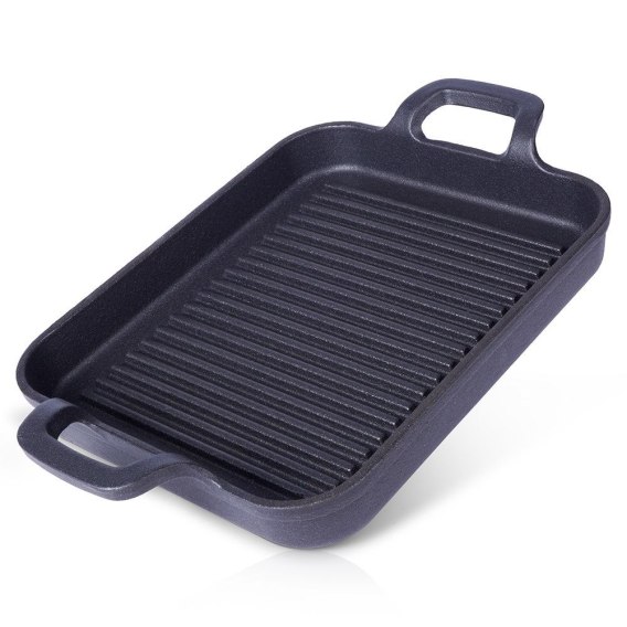 Materiał: żeliwo, Długość: 28,5 cm, Szerokość: 18 cm, Wysokość: 4,5 cm, Średnica: Głębokość: Grubość: Pojemność: Waga (g): 1889, Kolor dominujący: czarny, Dodatkowo, Istotne informacje: Logistyka, Logistyka długość(cm): 28,5, Logistyka szerokość(cm): 18, Logistyka wysokość(cm): 5, Waga gabarytowa (g): 420