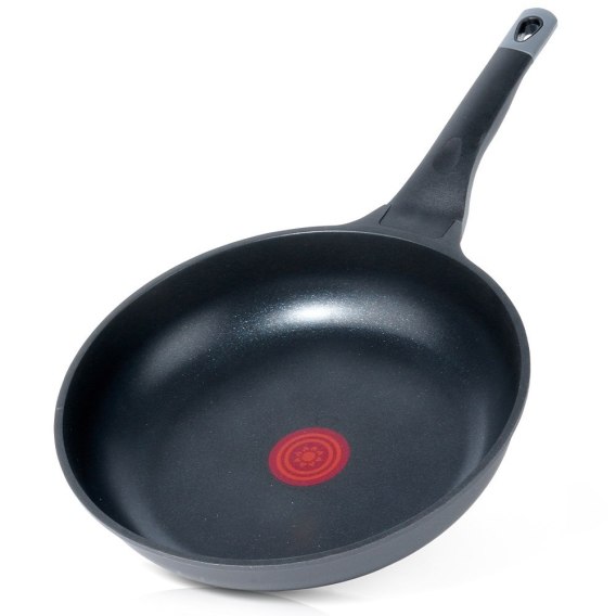 Patelnia z powłoką ILAG Essential oraz wskaźnikiem nagrzania. Posiada płaskie dno, idealna do smażenia z minimalną ilością tłuszczu. Nadaje się na indukcję i do zmywarki.