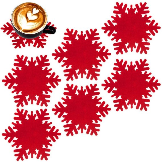 - PRZYDATNE - Zestaw sześciu podkładek pod gorące kubki, szklanki oraz filiżanki w kształcie płatków śniegu. Każda podkładka ma wymiary 13,5 x 13 cm. Stanowią wyjątkową dekorację i ozdobę stołu.