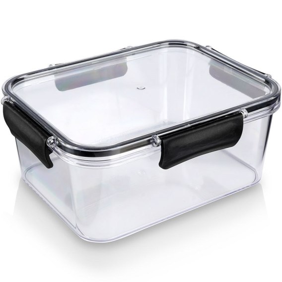 Przezroczysty pojemnik z gumową uszczelką w pokrywie. Szczelna pokrywa zamykana na cztery klipsy. Idealny do przenoszenia i przechowywania żywności.