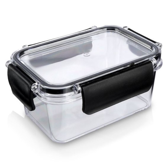 Przezroczysty pojemnik z gumową uszczelką w pokrywie. Szczelna pokrywa zamykana na cztery klipsy. Idealny do przenoszenia i przechowywania żywności.