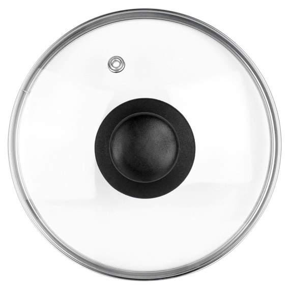 - SZKLANA - Pokrywka wykonana z żaroodpornego, przezroczystego szkła. Posiada obręcz wykonaną ze stali nierdzewnej w kolorze srebrnym oraz uchwyt z wytrzymałego tworzywa w czarnym kolorze. Przezroczysty kolor pokrywki pozwoli nam na sprawdzenie procesu gotowania bez konieczności jej podnoszenia. Pokrywka jest odporna na wysokie temperatury do max. +200°C.