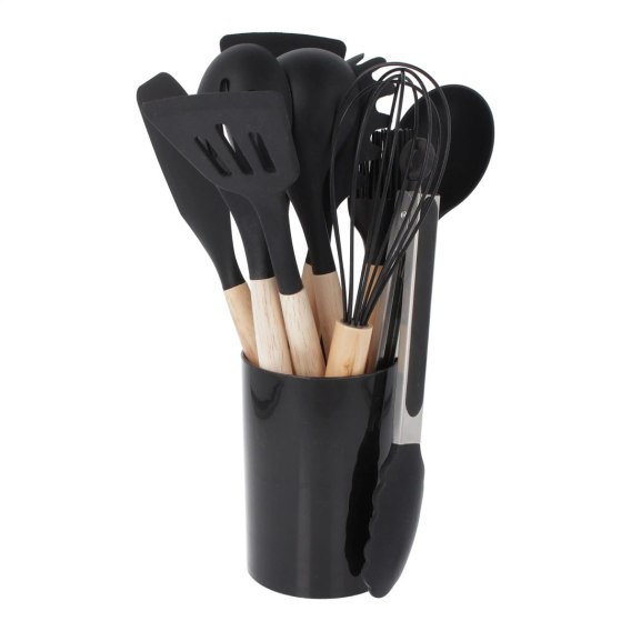 Przybory kuchenne silikonowe drewniane ze stojakiem zestaw 12-ele BRUNBESTE BB-3462