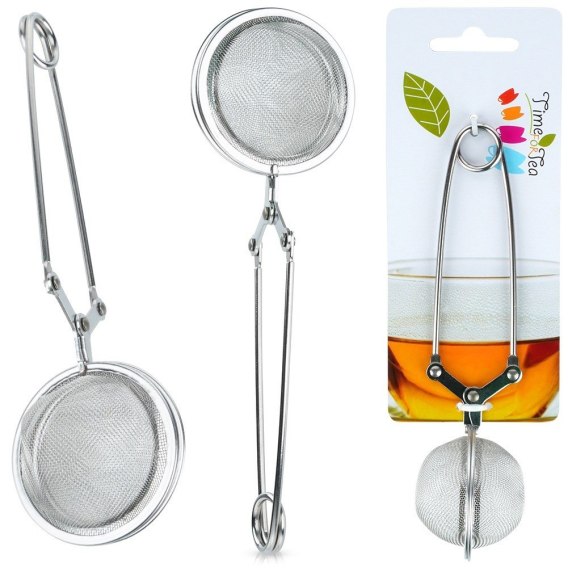 Sitko do zaparzania herbaty oraz ziół wykonane ze stali nierdzewnej. Wyposażone w szczypce ułatwiające otwieranie oraz wyciąganie.