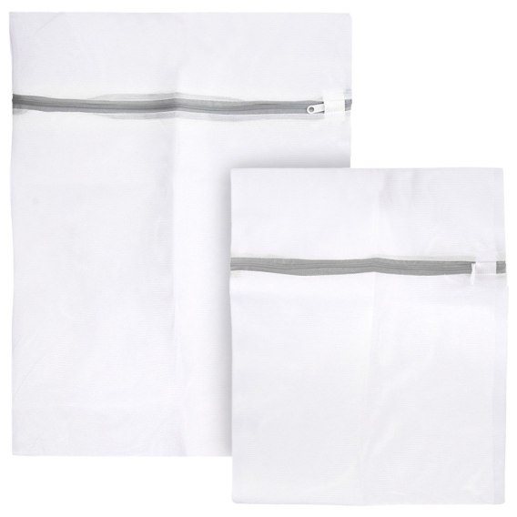 Zestaw dwóch worków do prania. Idealnie nadają się do prania biustonoszy i innych delikatnych tkanin. Siatki są wyposażone w plastikowy suwak, aby nie uszkodzić prania.