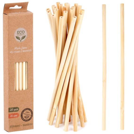Zestaw 20 szt. wielorazowych słomek do napojów wykonanych z drewna bambusowego. Słomki idealne do zimnych napoi.