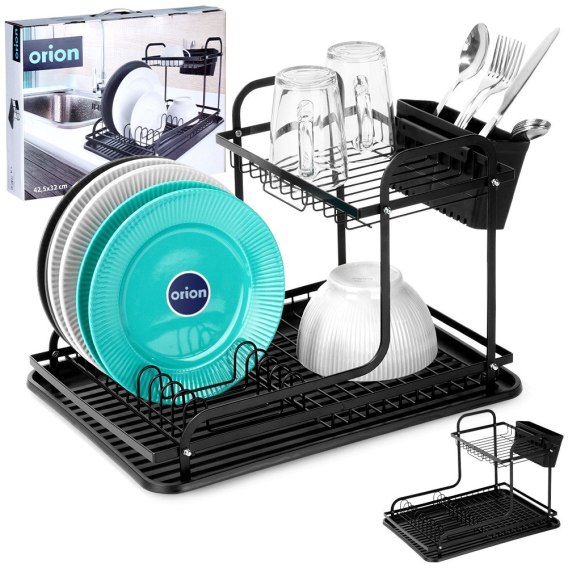 Dwupoziomowa, kompaktowa suszarka na naczynia z miejscem na talerze, sztućce oraz inne naczynia. Wykonana z wytrzymałych materiałów. Dzięki niej zapomnisz o nieuporządkowanych naczyniach i mokrych śladach na blacie szafek przy zlewie. Suszarka jest niezwykle pojemna, pozwala na równoczesne suszenie naczyń na dwóch poziomach. Niezbędny element wyposażenia kuchni. Oryginalny produkt czeskiej marki Orion. Wyprodukowano zgodnie z europejskimi standardami.