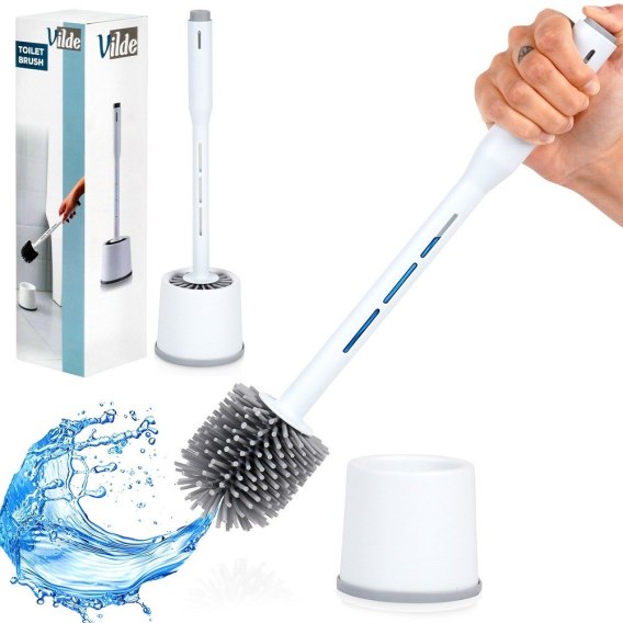 Praktyczna szczotka do toalety z pojemnikiem i dozownikiem płynu. Modny i jednocześnie klasyczny wzór pozwala na jej wkomponowanie w przestrzeń każdej łazienki, czy toalety. Silikonowe włosie oraz możliwość uzupełniania płynu bezpośrednio w rączce sprawiają, że szczotka jest łatwa do utrzymania w higienicznym stanie, co zapewnia długotrwałe i efektywne użytkowanie. Oryginalny produkt marki Vilde. Wyprodukowano zgodnie z europejskimi standardami.