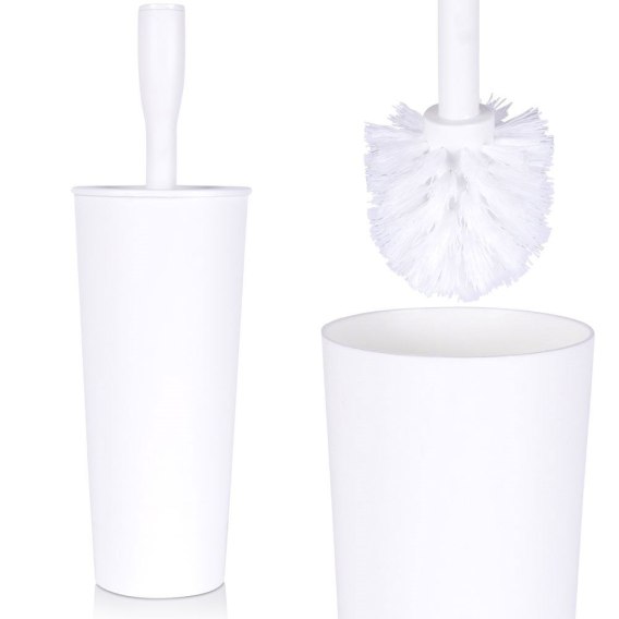 Szczotka do czyszczenia WC z pojemnikiem. Prosty wzór wkomponuje się w przestrzeń każdej łazienki, czy toalety. Szczotka wykonana z tworzywa w białym kolorze.