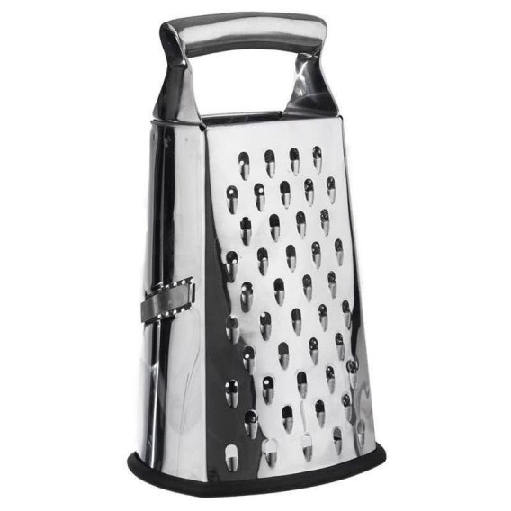 Praktyczna i wygodna tarka z czterema ostrzami. Idealna do tarcia warzyw, owoców, serów, czekolady, cynamonu, gałki muszkatołowej i innych produktów. Ma antypoślizgowy spód.