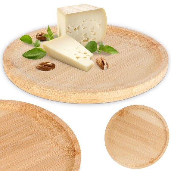 Materiał: drewno bambusowe, Długość: Szerokość: Wysokość: 1,5 cm, Średnica: 20 cm, Głębokość: Grubość: Pojemność: Waga (g): 197, Kolor dominujący: brązowy, Dodatkowo, Istotne informacje: Logistyka, Logistyka długość(cm): 20, Logistyka szerokość(cm): 20, Logistyka wysokość(cm): 1,5, Waga gabarytowa (g): 66.67
