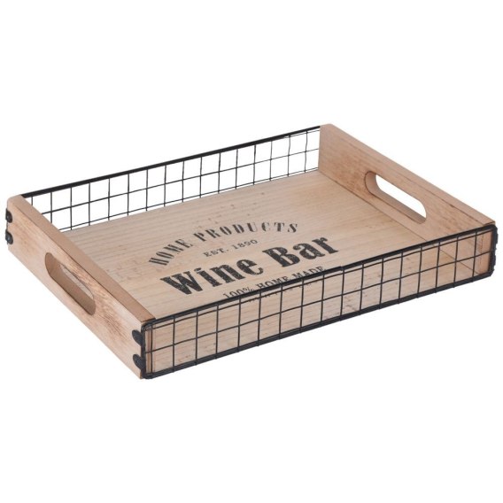 Taca do serwowania przekąsek, dań i napojów. Wykonana z drewna oraz metalu. osiada wygodne uchwyty do przenoszenia.