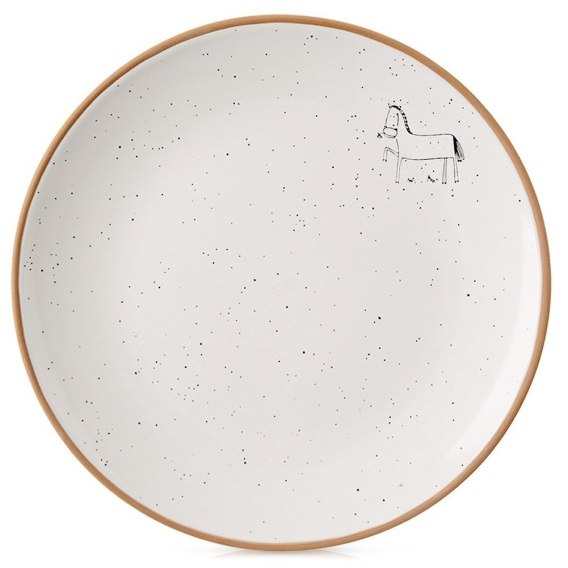 - Mały talerzyk deserowy o średnicy 20 cm - Talerz do serwowania przekąsek i deserów o wymiarach 20 x 20 x 2,5 cm. Talerz posiada urocze wyżłobienie z motywem konia.