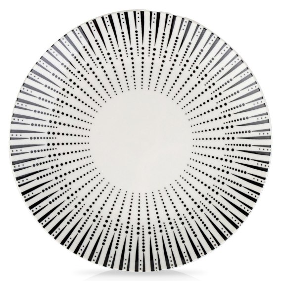 Talerz deserowy wykonany z porcelany w białym kolorze. Posiada efektowny, czarny dekor. Doskonale sprawdzi się do serwowania ciast, deserów i przekąsek. Nadaje się do zmywarki.