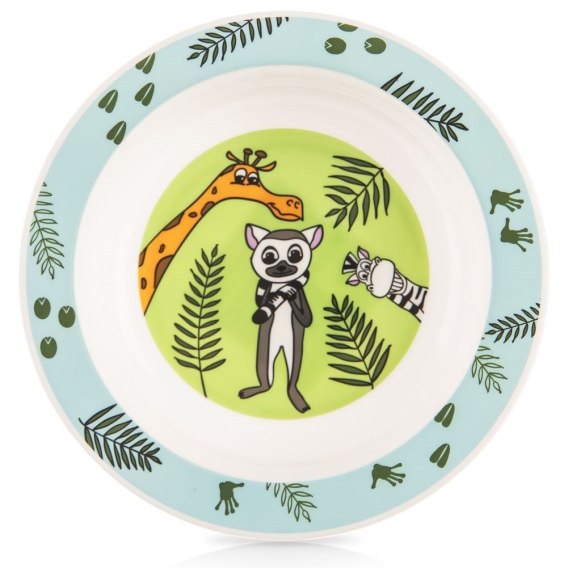 Talerz głęboki dla dziecka z dziecięcym motywem safari i zwierząt. Idealny na każdy posiłek. Nadaje się do mycia w zmywarce do naczyń.