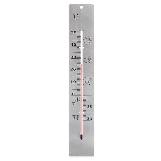 Termometr informuje o aktualnej temperaturze na zewnątrz oraz wewnątrz pomieszczeń. Posiada klasyczny wygląd i wyraźną skalę. Wykonany ze stali nierdzewnej.
