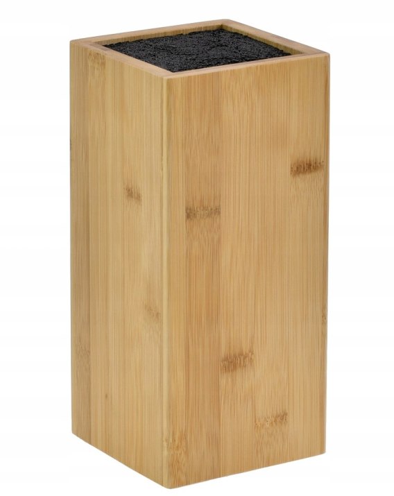 Uniwersalny stojak na noże wykonany z drewna bambusowego oraz polipropylenu. Nowoczesny i prosty wzór idealnie wpasuje się w wystrój kuchni, dzięki niemu, noże już zawsze będą uporządkowane, a zarazem na wyciągnięcie ręki. Wewnątrz stojaka umieszczono wkład z nitek polipropylenu, które umożliwiają przechowywanie noży o dowolnych długościach i szerokościach jeżeli tylko zmieszczą się w stojaku.