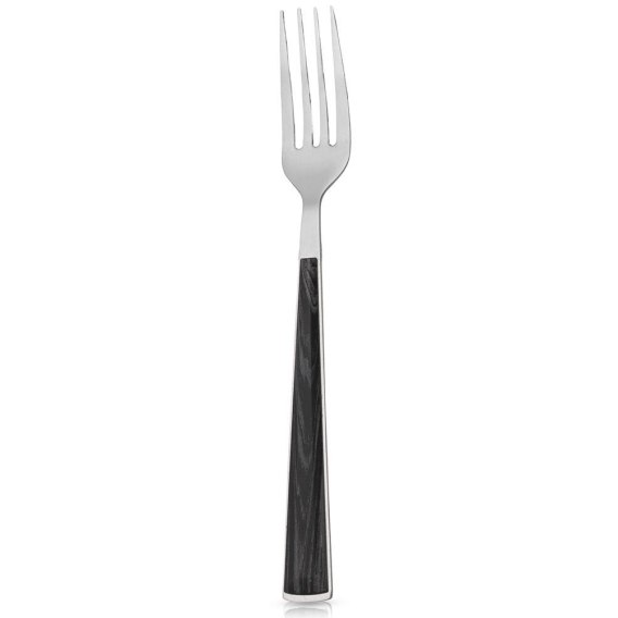 Widelczyk deserowy o długości 18 cm. Wykonany ze stali nierdzewnej w srebrnym kolorze, posiada uchwyt imitujący drewno w czarnym kolorze. Nadaje się do mycia w zmywarce.